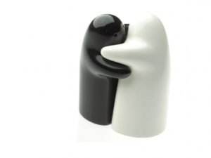 MoMA STOREはニューヨーク近代美術館のキュレーターが厳選したMoMAの代表的なプロダクトから雑貨、インテリアまでグッドデザインを取り揃えたショップです。こちらはニューヨーク近代美術館ショップの人気商品の一つ、ホワイトの塩入れとブラックのコショウ入れがしっかりと抱き合う、ハグ・ソルト&ペッパーシェーカーズです。