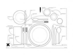 こちらはディナーのセッティングの配置や、テーブルマナー(ドイツ語)がプリントされたランチョンマットです。高級ディナーでも物怖じしないように、このランチョンマットを見ながら練習するのもいいですね。