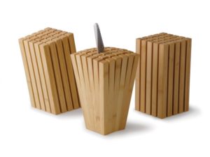 刃渡り21センチまでのナイフ、包丁を収納できます。竹集成材をブロックにすることで、独自のインパクトと、安定感を実現しています。キッチンに映えて、ナイフコレクションをしまっておくにはぴったりです。放射型、直角型、傾斜型の3モデルの展開です。
