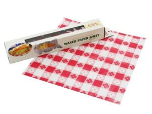 バッグクラフトのワックスペーパーです。バスケットライナーとして揚げ物などの敷き紙に。またカットしてキャラメルやキャンディーの包装にも使えます。