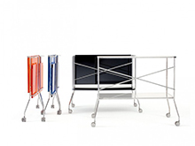 アクリル樹脂製のトレイと金属のフレームのコンビネーションをシンプルで洗練されたデザインで仕上げています。例えば前菜やビュッフェを運ぶ為のワゴンとしても、トレイ部分を取り外して使えるコーヒーテーブルとしても、幅広く活躍します。もちろん、常設のシェルフやサイドテーブルとしても便利にお使いいただけます。機能の充実はもちろん、スタイルにも妥協のないイタリアらしいデザインです。