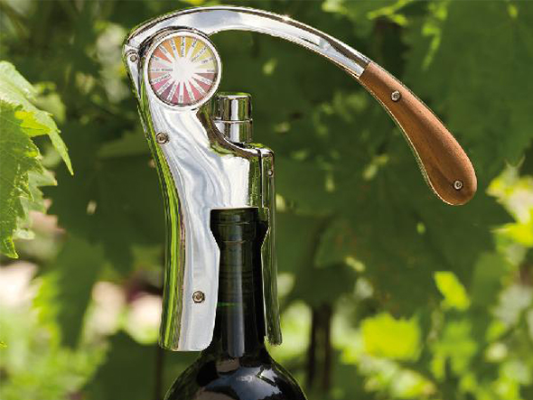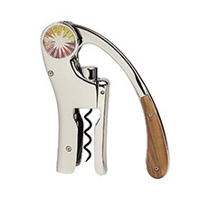 手早く簡単にワインボトルを開けることができるスクリューです。レバーを押して引くだけでコルクを抜くことができます。ワインの種類を示すカラーチャートが付属。メジャーなボトルの直径を想定して作られており、ハンドルのウッドには無垢材を使用しています。