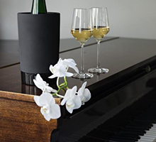 ガラス台が付属しており、テーブルクロスを汚すことがありません。メジャーなワイングラスやカラフェに合うサイズを採用することで、どちらにもお使いいただくことを可能にし、はじめはカラフェ、その後にグラスにご使用いただくことで2度デキャンタージュすることもできます。3年未満の赤/白ワインにおすすめです。