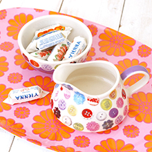色とりどりの愛らしいボタンがキュートに散りばめられた、カラフルなデザインがお洒落です。下段にお砂糖を、上段にミルクを入れて使います。AVOCAでお洒落なティータイムをお楽しみください。