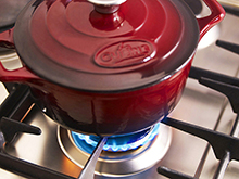 こちらはホーローのキャセロールです。鋳物にガラス質のホーロー加工を施しており、食材から出る酸やアルカリに強く、においがつきにくい特徴があります。 熱伝導率が良く、保温性、耐久性、安全性に優れ、食材のうまみを逃がすことなく料理を美味しく仕上げます。