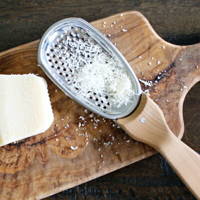 こちらはチェリーウッド材を贅沢に使用したビアンキ社のチーズグレーターです。素朴で温かみを感じる持ち手は、窪みがあり優しく手にフィット。手取り感良く仕上がっています。また、切れ味の良い刃はなめらかなおろし心地でスムーズにチーズや食材をおろすことができます。