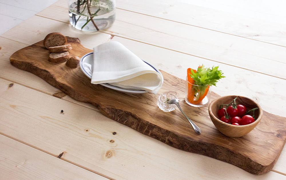 エクストララージサイズは1枚でも存在感があるので、テーブルに置くと華やかな気持ちにさせてくれます。カッティングボードとしてだけではなく、ハムやチーズなどを載せてスペインバール風に飾っても素敵です。