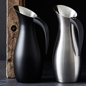こちらはピッチャーです。注ぎ口が斜めになっている事で、水が一気に注がれるのを防ぎ、注ぎたい量だけ注げます。また、注ぎ口についてる網でレモンや氷が出てしまうのも防ぐ事ができます。持ちやすく、デザインにも優れている為、パーティーなどのイベントでもおススメです。