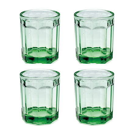 透明なグリーンの鮮やかな色合いが食卓を楽しく彩る、ミディアムサイズのグラス4個セットです。