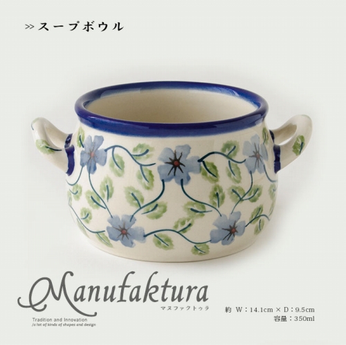 ドイツにほど近いポーランドの小さな街、ボレスワヴィエツ。ここで焼かれる陶器の総称ともなっているこの街には、 たくさんの陶窯や陶器店が立ち並びます。この街で1993年にスタートした「マヌファクトゥラ社」は、新しい会社でありながら、伝統的な柄も豊富に作っており、一方で、新しいデザインやフォルムの制作にも意欲的に取り組んでいます。