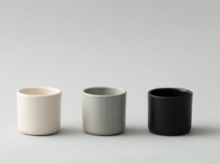 こちらは色々な使い方ができる3色セットのカップです。デスクで、キッチンで、テーブルで、バスルームにも美しい印象をもたらしてくれます。ホワイト、グレイ、ブラックの3色セットとなります。