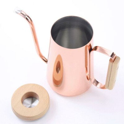 こちらはH.A.N.D.コレクションのケトルです。コーヒーをドリップするためにデザインされました。注ぎ口は細く設計されており、これにより少量のお湯でもコーヒーをドリップできます。ハンドル部分は木製なので、熱を通しにくい構造です。