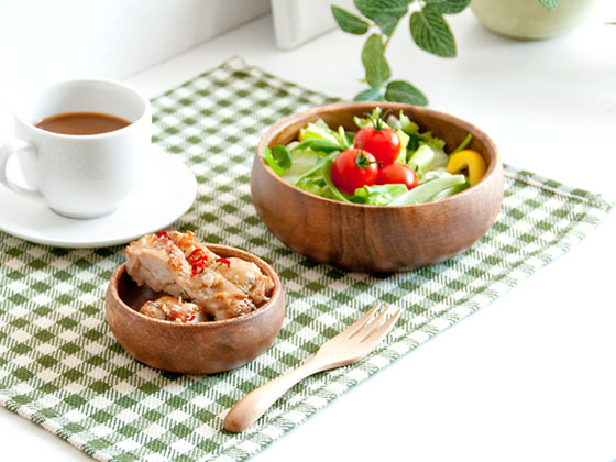 食卓のテイストを選ばず、北欧やナチュラル、モダン、エスニックなど様々なお部屋と相性のいいアカシア食器。美しい木目の温もりある表情が、食卓を優しい雰囲気に仕上げます。