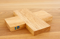 こちらはナチュラルな色味が素敵なオーク材がプラスの形に組み合わされた、シンプルなデザインの鍋敷きです。サイズは少し小さめで、コーヒーポットを置いたり、小さめの鍋を置くのに丁度良いです。
