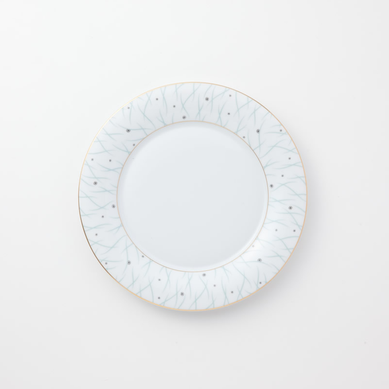 こちらはジェイド・スイング・ブルーシリーズのケーキプレートです。美しい石や宝石の総称である翡翠(硬玉)の深緑のイメージと揺れる青海原を表現したデザインです。