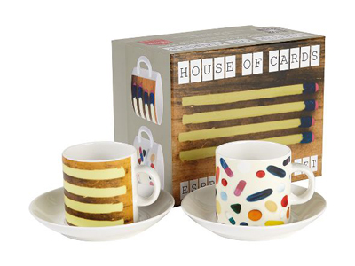 チャールズ&レイ・イームズ夫妻の代表作、「House of cards」で使用されている色彩豊かなグラフィックがプリントされたエスプレッソカップとソーサーのギフトボックスです。