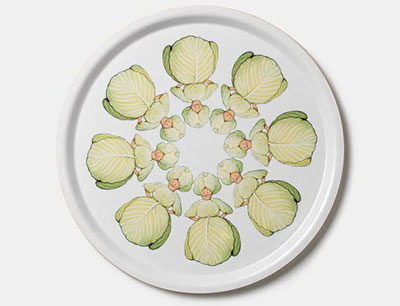 こちらはエルサ・ベスコフが描いた童話に登場する人々や自然をユーモアたっぷりにデザインしたユニークなトレイ。フォルムデザインはカタリナ・キッペルで、彼女の作品はストックホルムの国立美術館にも収められています。1995年よりグスタフスベリで工房も主催しています。