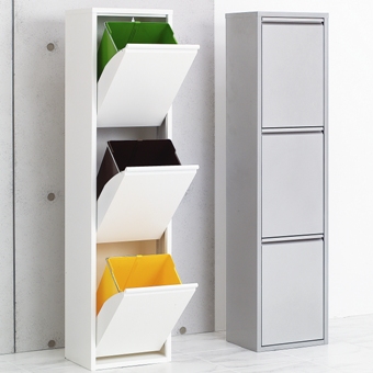 スチール素材でコンパクトに設置可能なイタリア製リサイクルビンです。3つの扉は1つずつセパレートに開閉できます。中に入っている合計3つのプラスチック素材のごみ箱も取っ手がついていて使いやすく分別ゴミ箱の定番スタイルといえます。