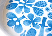 ブルーのデザインが爽やかなシリーズです。深さがあり、大きめサイズなので、汁気の多い煮物などを盛り付ける時におすすめです。