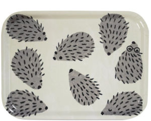 こちらは薄いグリーンの地に可愛らしいハリネズミが一面に描かれたトレーです。おやつタイムやお子様用に、ペンなどの小物をまとめるのにもぴったりです。