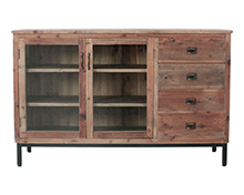 こちらはスチールと古材を組み合わせ、素材の風合いを活かしたシンプルさが魅力のバベルシリーズのサイドボードです。取手やツマミにもヴィンテージ感あるパーツを使用しています。ディスプレイしながら収納できるキャビネットは、お気に入りの食器やオブジェを古材の風合いが引き立ててくれます。