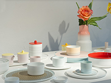デザイナー、ショルテン&バーイングスは、有田焼の広範囲に及ぶリサーチと分析を行い、有田焼にヨーロッパ的な感覚を融合させたカラーポーセリンシリーズを創り出しました。日本の伝統色である、淡く、果敢ない色の層を重ねながら、陶磁器という文脈を再解釈したテーブルウェアは、現代的で機能性の高い形の中に、有田特有の色遣いが反映されています。