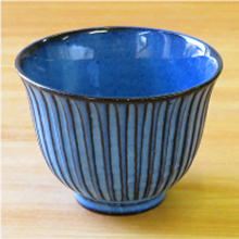 このblue彫は、職人の手仕事によって作られています。このため、形状や風合いもひとつひとつ異なります。黒い陶土の上から青い釉薬をかけることで、この独特の深い色合いが生まれます。また、削りの部分に釉薬がたまることで美しいグラデーションが表現されています。
