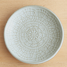 長崎県波佐見町で活動し、「sen」を手掛ける、長岡千陽さんとのコラボレーションで生まれたドイリーの器。ケーキの下に敷かれた「レースペーパー」をモチーフに、デザインされています。