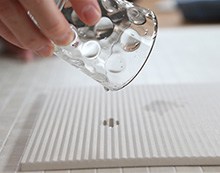 こちらは珪藻土のドライングプレートです。A4サイズなのでキッチンのちょっとしたスペースで、よく使うグラスやカップの食器をが早く乾かせて便利です。表面は凸凹構造で、食器の接地面も少なく、空気が通り清潔に保たれます。湿気を長時間放置しないから湿気を好む雑菌が発生するのを抑制してくれます。