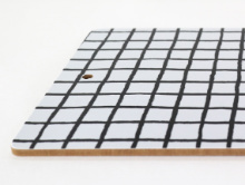 こちらのカッティングボードは、手描きのようなマス目模様がかわいい、清潔感あるデザイン。ラミネート加工された耐湿性のあるボードなので、水に濡れても大丈夫。パンやチーズを切ってそのまま出しても様になるアイテムです。
