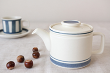 こちらはティーポットです。持ち手は独特のくぼみがあり、ついつい指を添えたくなります。カップ、ティーポット、シュガーポットとクリーマーと揃えて、北欧のように家でゆったりとした時間を過ごすのはいかがでしょうか。
