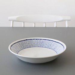 日本の陶磁器生産の6割のシェアを誇る岐阜県の美濃地区の中にある、明治2年創業の「カネ定製陶」が手がける蒼の器シリーズの蒼十草(そうとくさ)。「十草模様」とは、縦縞に描かれたデザインで、古くから日本で親しまれてきた模様の一つです。食器の内側に十草模様があるので、盛り付けた時に真上から見ると、料理にスポットライトが当たったかのような美しい光景が広がります。