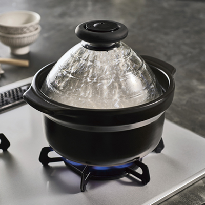 - 材質: 釜/耐熱陶器、ガラス蓋/耐熱ガラス、フタグリップ/ポリプロピレン、シリコーンゴム