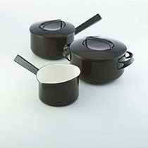 ミルクパン、片手鍋、両手鍋各1の3個セットとなっており、どれも使いやすいサイズです。シックな印象のブラックカラーは、どんなキッチンにも似合います。