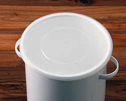 いろんな使い方ができる野田琺瑯のラウンドストッカーです。ひっくり返せばトレイとしても使える蓋のほかに、ホワイトシリーズと同じシールふたがついているので、においもれもありません。