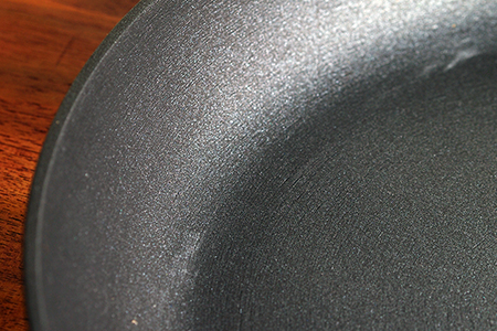 ポワン・バーグルのフライパンは、「エクスカリバー」というコーティーングが施されたノンスティックフライパンです。エクスカリバーはアメリカのWHITFORD社が作りだしたコーティング方法で、一般的なフッ素樹脂加工のように表面に塗ったり貼ったりするコーティングではなく、特殊ステンレス鋼の突起にエクスカリバーコーティングを染み込ませているので、金属製のツールを使ってもはがれることなく、世界一耐久性に優れ長持ちするコーティングといえます。