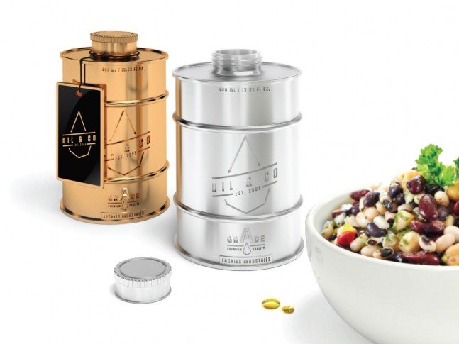 原油を入れるドラム缶から着想を得たというフォルムに、ファッショナブルなロゴをあしらっています。シルバーとコッパーの2種類のカラーで、オリーブオイルやビネガーはもちろん、その他オイルなどでも使うことができます。テーブルやキッチンシェルフ、ピクニックなどでも雰囲気を盛り上げてくれるナイスデザインです。