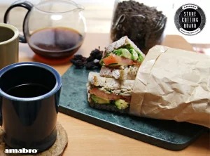 こちらは大理石でできたカッティングボードです。テーブルトップのアクセントになるので、チーズやパンを乗せてパーティーシーンの演出、いつものテーブルも違った雰囲気に演出可能です。