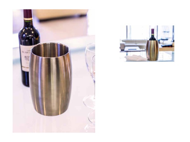 こちらはステンレスの美しさを全身にまとったワインクーラーCastelloです。ステンレスの熱伝導効率と、優れた二重構造より、冷やしたワインをそのまま入れることで、冷えた状態を長時間キープします。氷などは使わずワインクーラー本体を冷やすことでワインを冷やすことも出来ます。また、ワインクーラーとして使用しないときはフラワーベースやちょっとした物入れとしても使えます。