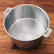 Lシリーズは、可能な限り凹凸を排除したシャープなフォルムと洗練された雰囲気のヘアライン加工が特徴。角をL字にすることで底面積が広くなり、IH調理器などのフラットな熱源を使用した場合に優れた熱効率を実感できます。底面はステンレスでアルミを挟んだ3層構造で弱火調理でも素早く鍋全体を温め、食材へ優しく火を通します。