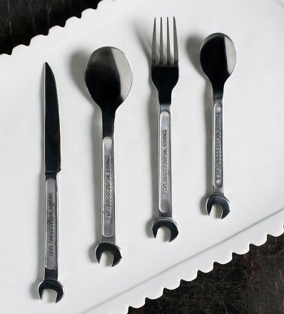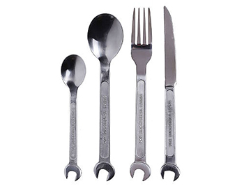 こちらはボルトやナットを固定するレンチをモチーフにしたカトラリーシリーズ。ティースプーン・スプーン・フォーク・ナイフの4種セットです。本物の工具と見間違えるほどリアルなデザインと質感が楽しく、これまでにない意外なデザインはホームパーティーやギャザリングにぴったりです。ユニークなデザインはプレゼントとしてもおすすめです。