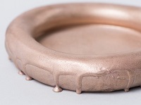 こちらはTokonomaシリーズの1つです。ロストワックス技法のプロセスに着目しデザインされたDish。 一定の長さのワックスをドーナツ状に成形し、内側を炙ることで底面がつくられます。この工程を踏むことで、厚みの違いや、したたりに個体差がうまれます。大量生産の技法を用いつつも、個々に表情が異なる作品です。