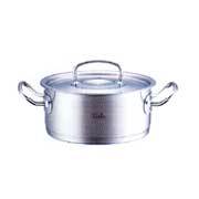 ドイツのキッチンウェアブランド、フィスラーのニュープロコレクション。キャセロールは浅型の両手鍋です。通常の煮物、特に魚など形のくずれやすいものが取り出しやすく、煮くずれを防ぎます。炒めものや、焼きものにも使えるので、焼き目をつけてから煮込む洋風煮込み料理に最適です。