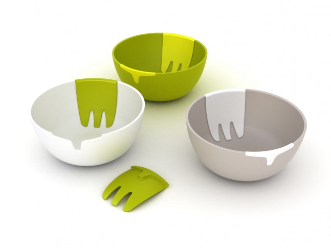 ハンズオンサラダボウルは、ボウルと取り外し可能なサラダサーバーが一体化したサラダボウルです。