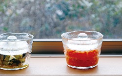 キッチンにストックしている野菜で浅漬けを簡単にサラダ感覚で作ることができます。おかずにもう一品プラスしたいとき、晩酌の肴に。自分好みの味付けを試せるのも自家製ならではの醍醐味です。緩やかなフォルムとクリアなガラスの浅漬鉢はそのままテーブルへサーブし、食器としてのコーディネートも楽しめます。