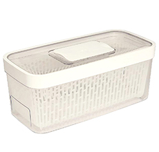野菜や果物が成熟する過程で放出するエチレンガスを、活性炭リフィルがしっかり吸収し、腐敗を防ぎます。底上げされたバスケットが、通気性の悪さなどから出る過度な水分に野菜や果物が触れるのを防いで通気性もアップ。野菜を洗う際にはコランダーとしても使えてとても便利です。